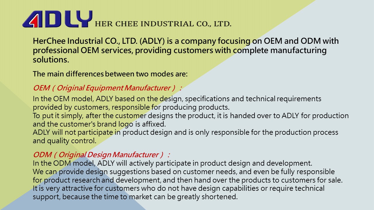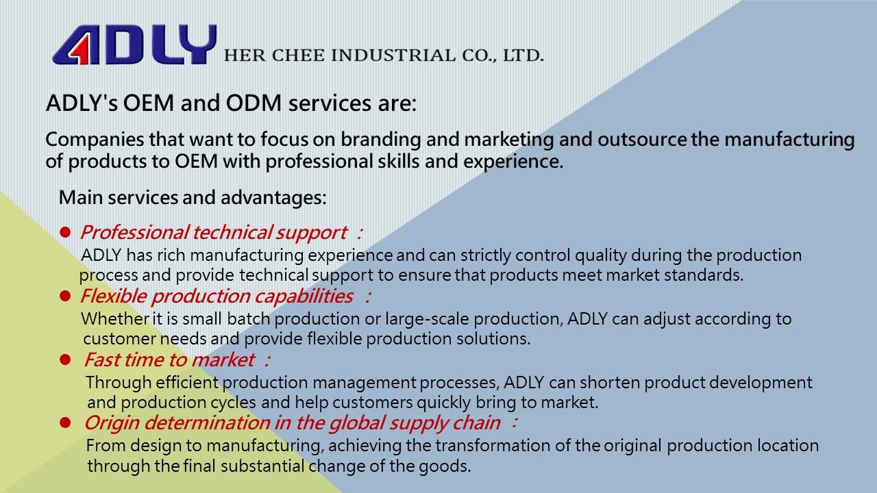 OEM and ODM professional services of ADLY can combine the advantages of quality, innovation and efficient production.